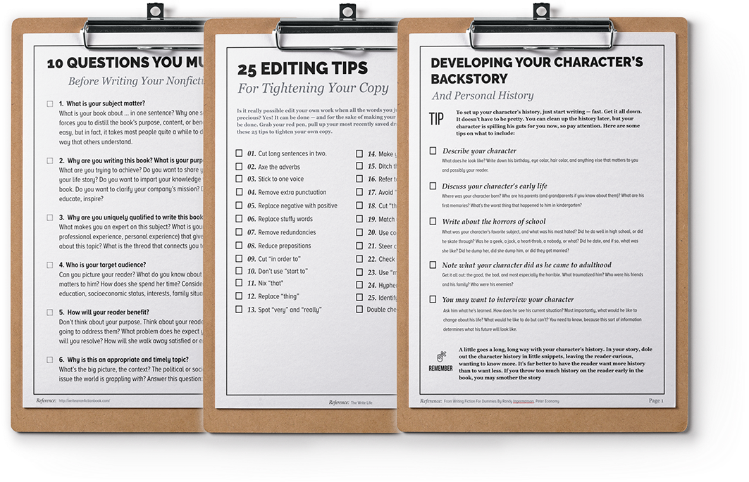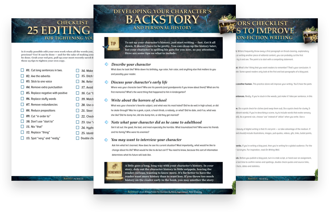 Checklists, Cheatsheets, Worksheets, Writing Tips, Prompts, Generators, Articles, Resources, Tools, OH MY!