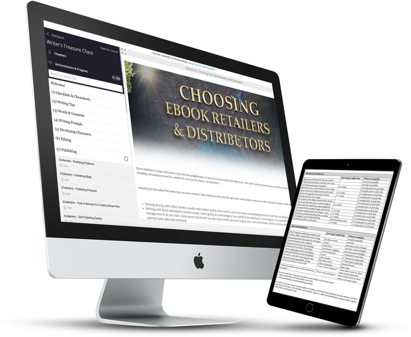 A: With the Writer's Treasure Chest Bundle, no physical products will be mailed. This is an online collection only and you will have lifetime access to the contents via our membership area. You will be able to access the material on any device that can connect to the internet.